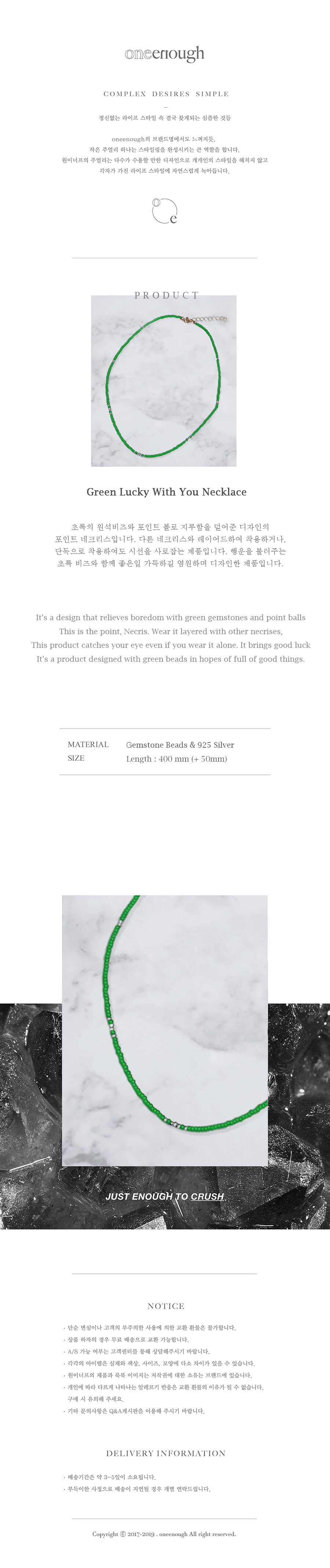It's a design that relieves boredom with green gemstones and point balls This is the point, Necris. Wear it layered with other necrises, This product catches your eye even if you wear it alone. It brings good luck It's a product designed with green beads in hopes of full of good things.