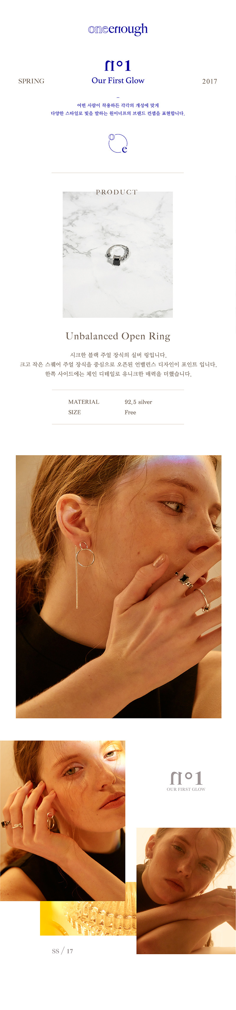 크고 작은 스퀘어 주얼 장식을 중심으로 오픈된 언밸런스 디자인이 포인트 입니다.