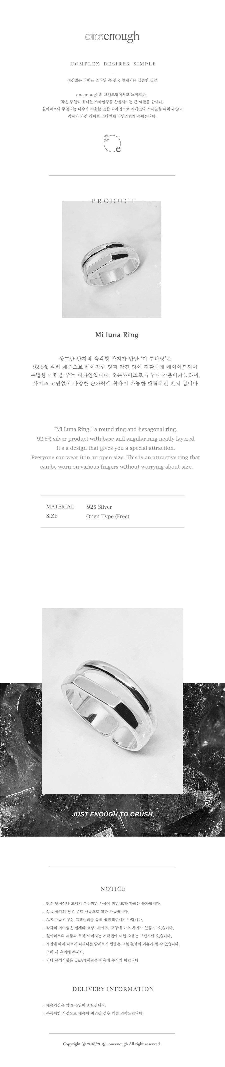 "Mi Luna Ring," a round ring and hexagonal ring. 92.5% silver product with base and angular ring neatly layered It's a design that gives you a special attraction. Everyone can wear it in an open size. This is an attractive ring that can be worn on various fingers without worrying about size.