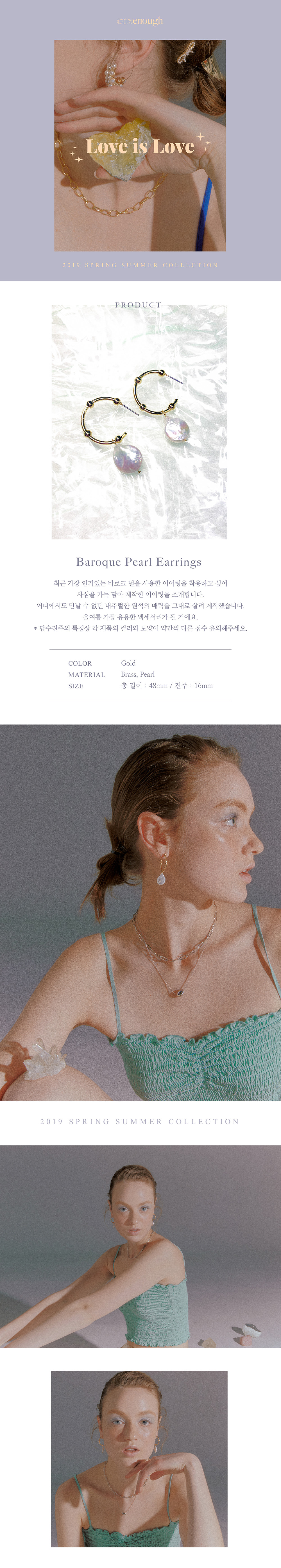 OneEnough presents a design using a baroque pearl with an unrefined design. To avoid monotonous design with a natural baroque pearl to the base size gold ring earring, the hoop has added a ball detail.