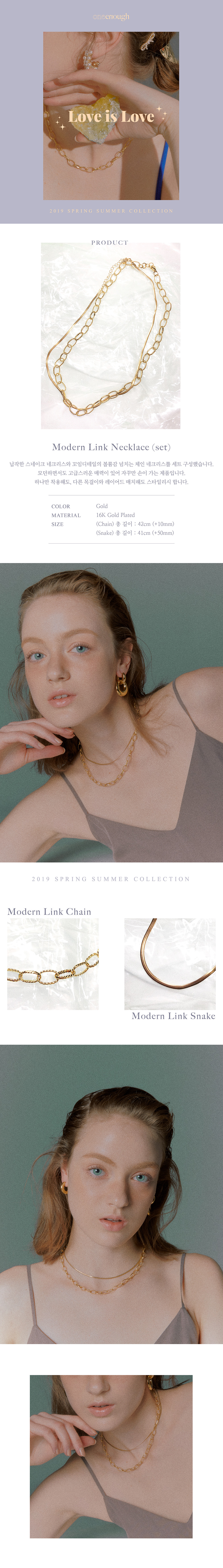 A set of flat Snake Necklace and voluminous chain Necklace with twisted tail. It's modern and luxurious, so I keep getting my hands on it. Even if you wear one, the other necklace and the layered match are stylish.