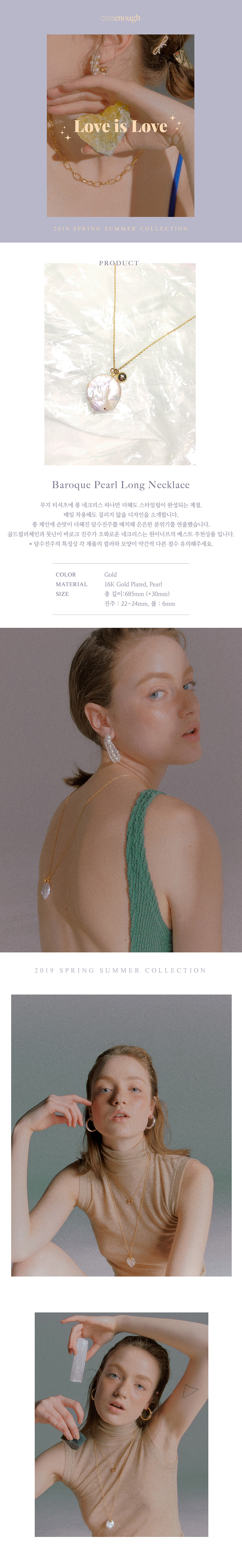 It's the season when you add a long necklace to your Non-print T-shirt. Introduce designs that won't get tired of wearing everyday. The long chain and the fresh water pearl added to the flavor created a subtle atmosphere. A combination of Gold Color Chain and Ugly Baroque pearls, Necklace is OneEnough's best recommendation.