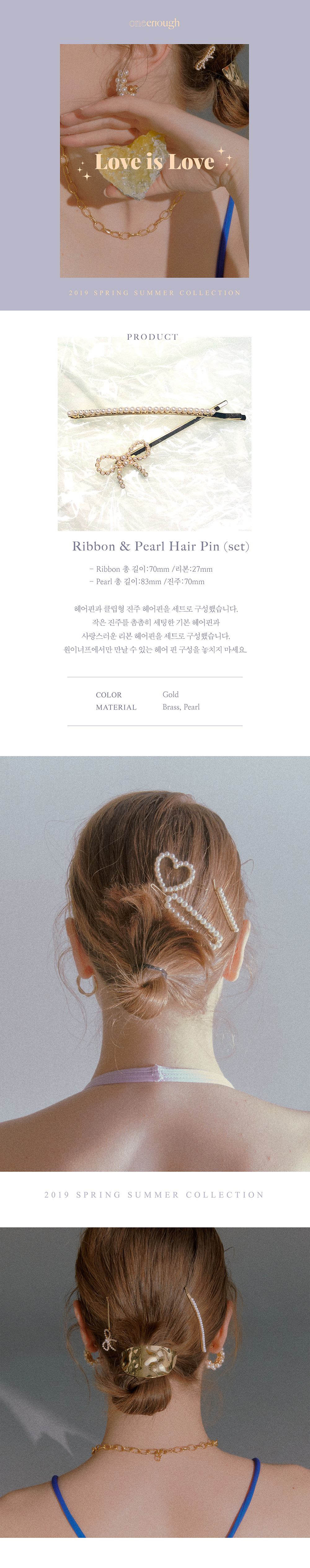 It consists of a set of basic and lovely ribbon hairpins with tightly set little pearls. Don't miss the hairpin configuration that you can only meet in OneEnough.